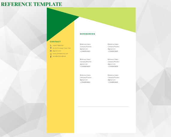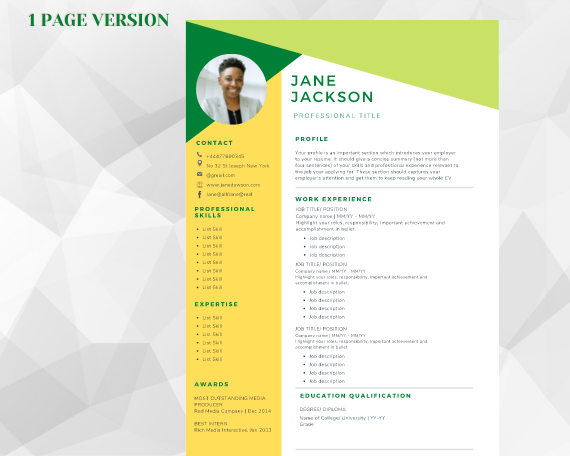 • Resume template is made up of  one page version of resume template; two page version of resume template; a references template and a cover letter template.